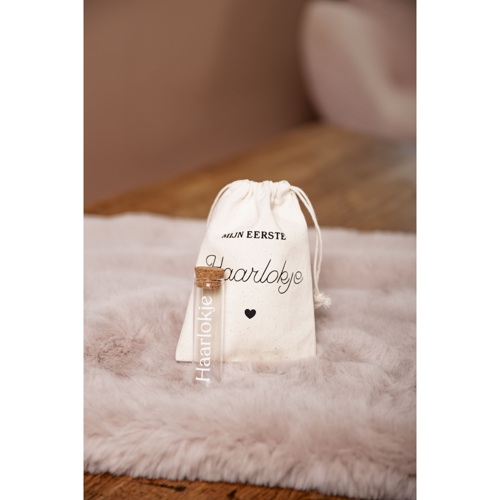 Onze haarlok bewaarset is de perfecte manier om dierbare momenten voor altijd te koesteren. De set bestaat uit een elegant glazen buisje, speciaal ontworpen om een haarlokje veilig te bewaren. Het buisje wordt geleverd in een stijlvol linnen zakje van 10x15 cm, wat zorgt voor een prachtige en duurzame verpakking. Ideaal als herinnering aan de eerste knipbeurt van je kindje, of als symbolisch aandenken aan een bijzonder moment. Geef jouw waardevolle herinneringen een speciaal plekje met deze unieke bewaarset.