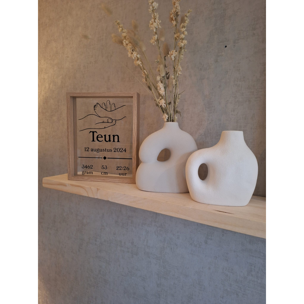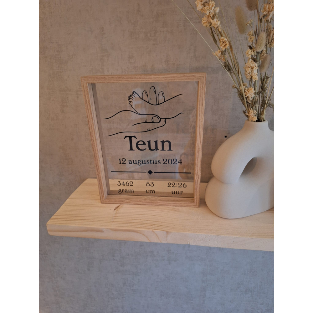 Vereeuwig een bijzondere mijlpaal met deze prachtige houten lijst, speciaal ontworpen om de geboortegegevens van een kindje te laten stralen. Dit stijlvolle en persoonlijke cadeau is perfect om te geven bij een kraamvisite, babyshower of als aandenken voor de ouders zelf.