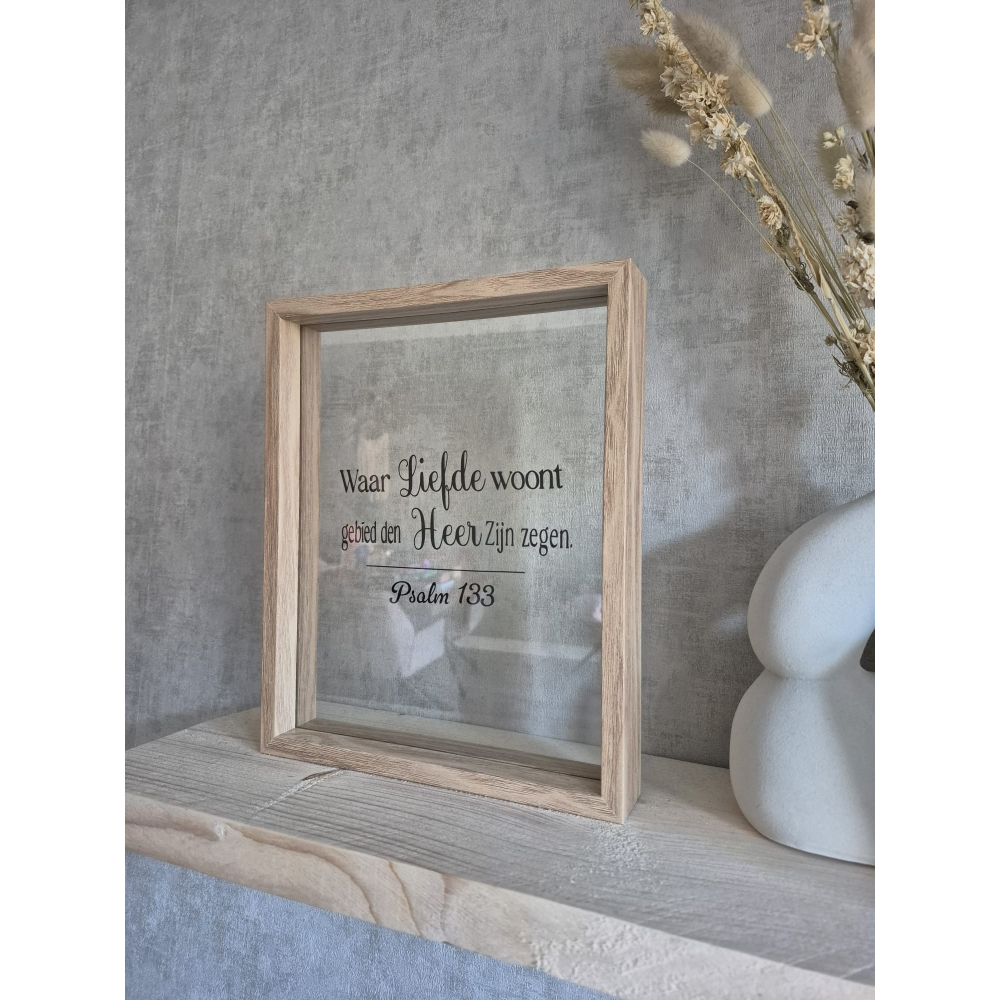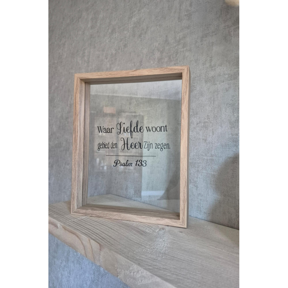 Als het goed is blijft de tekst die je tijdens de trouwdienst in de kerk heb meegekregen je voor altijd bij! Hoe bijzonder is het dan om deze tekst te laten bedrukken op deze mooie houten lijst! Deze lijst staat prachtig in de woonkamer, slaapkamer of een andere ruimte van het huis.
