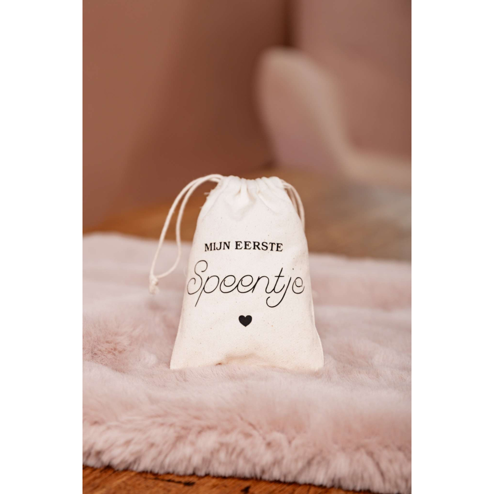 Maak bijzondere herinneringen tastbaar met ons prachtige linnen bewaarzakje met de opdruk "Mijn Eerste Speentje". Dit stijlvolle en duurzame zakje is speciaal ontworpen om het eerste speentje van je kindje op een veilige en mooie manier te bewaren.