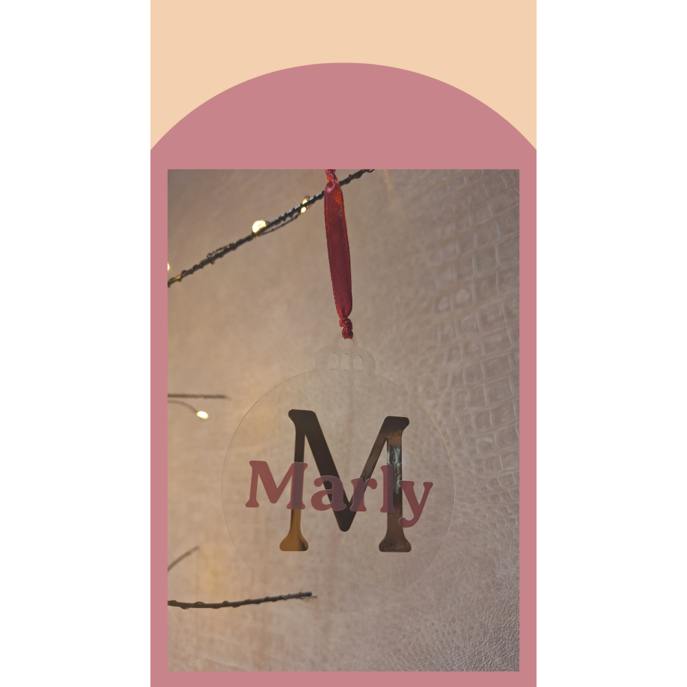 Deze platte kerstbal is een prachtige, persoonlijke toevoeging aan je kerstboom! De bal heeft een elegante, platte vorm en is versierd met de eerste letter van een naam in grote, opvallende letters als achtergrond. Bovenop de letter wordt de volledige naam in een subtiel, kleiner lettertype gedrukt. Dit maakt de kerstbal niet alleen een uniek decoratiestuk, maar ook een mooi, persoonlijk cadeau. Perfect om te geven of te krijgen voor kerst, en een geweldige manier om je kerstboom te personaliseren met een speciale naam. Voeg een beetje extra charme toe aan de feestdagen met deze bijzondere, op maat gemaakte kerstbal!