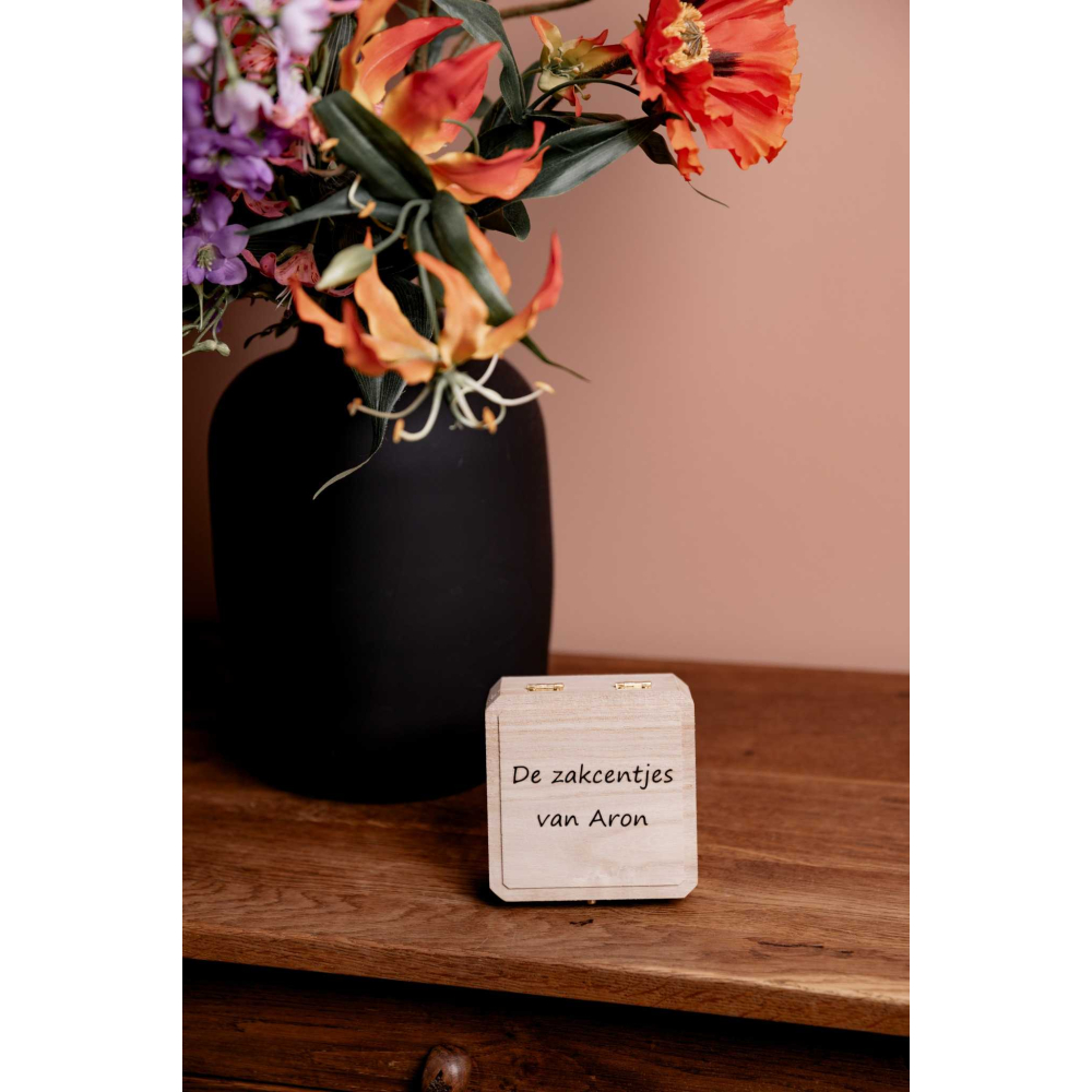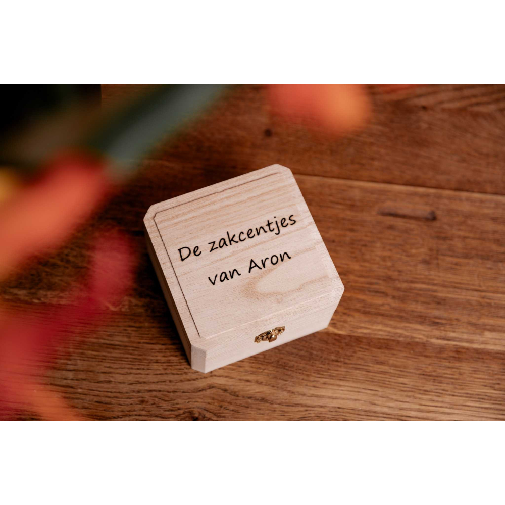 Spaar met stijl met dit prachtige houten zakgeldkistje! Dit kistje is perfect voor kinderen om hun zakcentjes veilig op te bergen. Met de opdruk "De zakcentjes van [Naam]" wordt het extra persoonlijk en een uniek cadeau. Of het nu voor een verjaardag, Sinterklaas of een andere speciale gelegenheid is, dit kistje maakt sparen leuk én overzichtelijk.